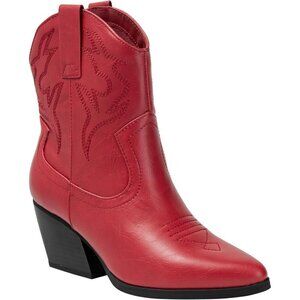 ✨ Kayday Cowgirl Boots Women Red Polyurethane (PU) Western Ankle Pointed Boots