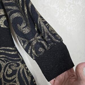 Kayla by Tally Taylor Sheath Midi Dress sz 14 Black Metallic Gold Stretch Fitted