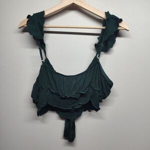 Kayla's Armoire Cropped Cami Top Women SizeL Green Ruffle Beachy Summer Festival