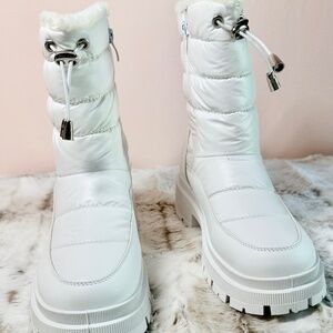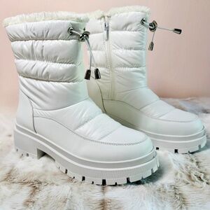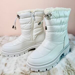 Kayleen Frosty White Quilted Winter Boot With 2" Chunky Heel