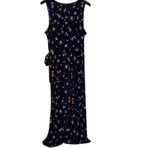 Kayleigh Delaney Knit Cropped Jumpsuit Women's Size XXL Navy Floral Faux Wrap
