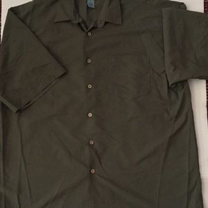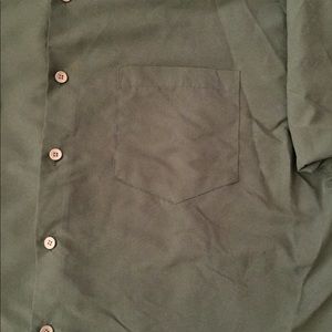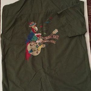 It is an Olive green button down with a embroidered parrot on the back. It is in good condition but with no tags