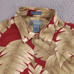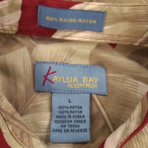 Kaylua Bay Resort Hawaiian Shirt Mens Large Red Rayon Palm Leaves Aloha