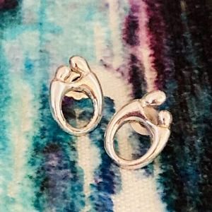 Kaynar $200 Vintage Sterling Silver 925 Mother & Child Classic Stud Earrings