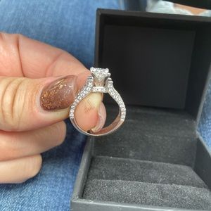 I have a white gold 14 karat diamond ring the band I got at a diamond show for Kay’s it cost 7000 then I had the center diamond that’s 1.06 mounted into it.this ring sparkles. The band has very clear real diamonds in them, and they float throughout the band the center diamond is a lab created diamond, but still beautiful with all paperwork.