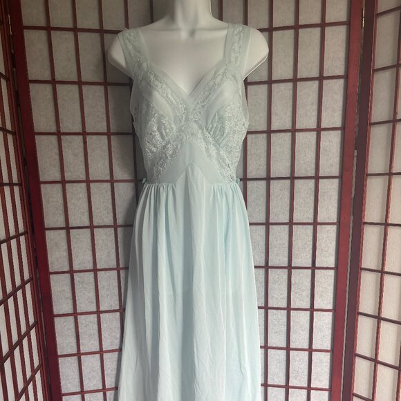 Kayser Luxite 1940-50’s Light Blue Nightgown with Lace Accents Size 34