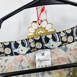Kayseria Pret Shift Dress Black Green Floral 3/4 Sleeve Tunic Mini NWT Size 16