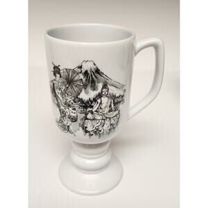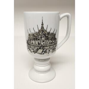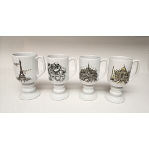 Kaysons International Pedestal Coffee Mugs Lot Of 4 Vtg 1965 Historical Landmark