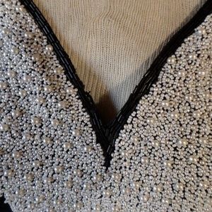 This is a stunning vintage ladies dress. The beading is stunning and the bodice and sleeves are literally covered with small white beads and also have larger round pearl beads too! The "Laurence Kazar" original manufacturer size and care tags are in place - they indicate a size "M" and the gown body is made from 100% silk.