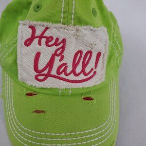 Kbethos Vintage HEY YALL Distressed Lime Green/Pink OS Ball Cap Womens Hat