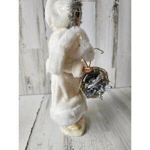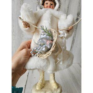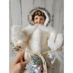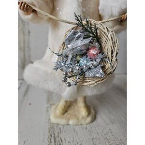 Kd vintage Christmas basket girl fur tinsel decor unique shabby chic centerpiece