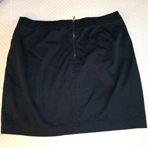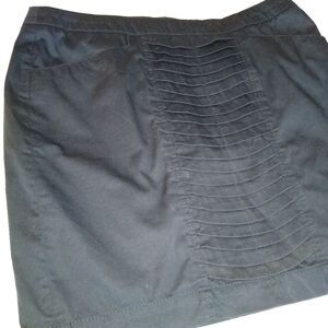 Kenar size 8 black mini skirt, cotton mix, front pockets, black zipper closure, pretty ruching detail.