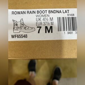 NWT in original box Keds Rowan bandana print rain boots size 7. These are 100% water proof boots with a chunky sole that provides lots of traction. The print is a cream, black and white bandana print. These are pull on boots. Great for winter and fall.
