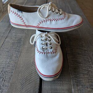 Keds Baseball Stitch Shoes Womens Size 8 White Red Leather Sneakers WH54430