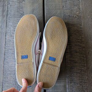 Details: Round toe, six-eyelet lacing with cream laces, baseball logo heel patch, Keds woven side tag, Keds heel logo, cushioned insole.