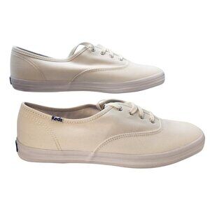 Keds Champions Original Lace Up size 9W (wide). Classic white sneaker. Cotton canvas upper. Soft, breathable twill lining. PU foam Softerra 10% recycled footbed. Flexible, lightweight rubber outsole. Spot wash, air dry. New in box.
