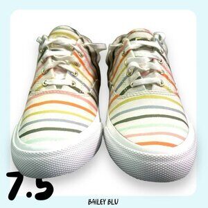 Brighten up any outfit with these Keds Color Striped Sneaker in size 7.5. The vibrant, rainbow-striped pattern will add a pop of color to your wardrobe, while the rubber material ensures durability.