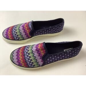 Keds Double Decker Fair Isle Canvas Rainbow Slip On Shoes Size 11W Navy