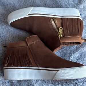 Keds Fringe Zip Bootie in Brown Suede Size 7 EUC