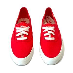 Keds Gender Neutral Red Canvas Sneakers Size 6.5 White Soles / Laces