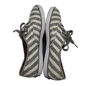 Keds Gray Off White Striped Canvas Sneakers Size 7 Women's
