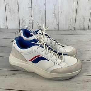 Keds K-89 White Chunky Leather Sneaker with Red&White Wave Accent