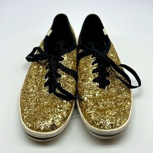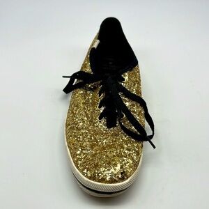 Keds + Kate Spade - Fun Bold New York Gold Glitter Lace Up Flat Sneakers Size 7