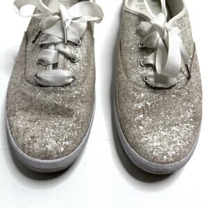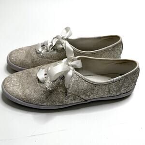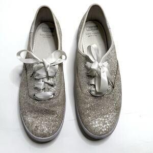 Keds Kate Spade Glitter Cream Low Sneakers Womens Size US 10 Ribbon Laces Bridal