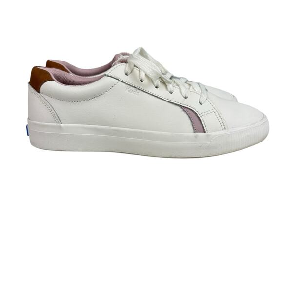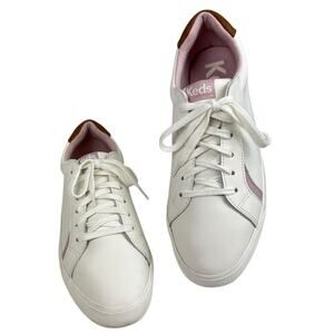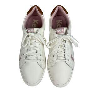 Keds Pursuit Leather Lace Up Sneakers White Pink Size 8.5