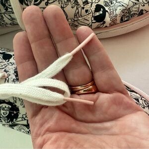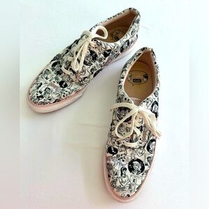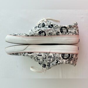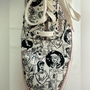 Awesome pair of keds that are perfect for the spring and summer! Lightly used, with minimal signs of wear and lots of life left in them, these black and white Betty and Veronica Archie comic themed sneakers have a very cool old-school vibe! Pink accents, border shoe and grace the end of each shoelace.