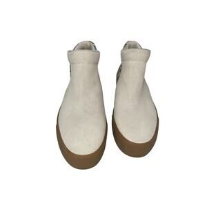 The Keds Rifle Paper Co Garden Party Ivory Suede /Floral Zip Up Booties in size 9 are perfect for a casual, comfortable, and stylish look. These ankle boots feature a round toe shape, low heel height, and cushioned insole for all-day comfort. The floral pattern and ivory color with suede upper give a preppy and garden-themed vibe, making them ideal for various occasions like travel, workwear, and everyday casual wear. With a rubber outsole and fabric lining, these booties are both practical and fashionable, blending style and functionality for the modern woman on-the-go.