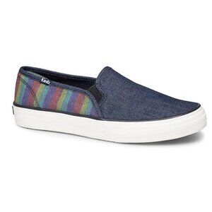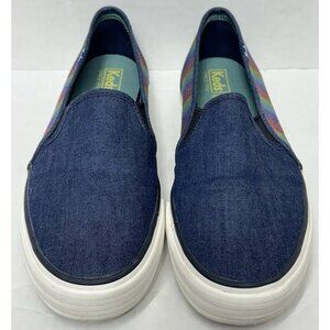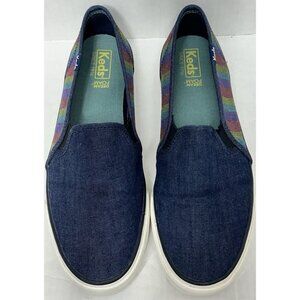 Keds Shoes Womens 8.5 Double Decker Stripe Denim Slip On Sneaker Preppy Nautical