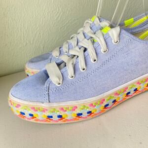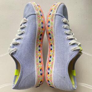Keds Triple Kick Platform Aztec Geo Embroidery Cornflower Blue Chambray Sz 8