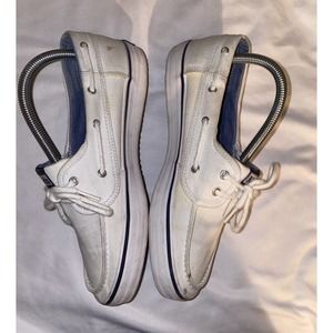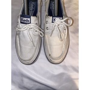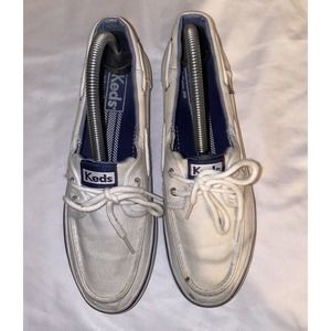 Keds Woman’s Boat Shoes Sneakers White And Light Blue Liner Size 8