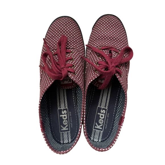 Keds Women 7.5 Burgundy Wine Red/ White Polka Dot Athletic Shoes Preppy Classic
