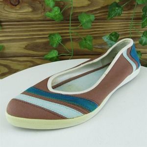 Keds Women Flat Shoes Brown Fabric Slip On Size 6 Medium (B, M)