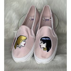 Heel Height: 1 1⁄4 in Platform Height: 1 1⁄4 in Canvas upper features Betty and Veronica profile portraits. Slip-on silhouette with dual side goring. Dream Foam foot bed Durable rubber outsole.