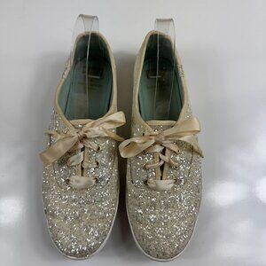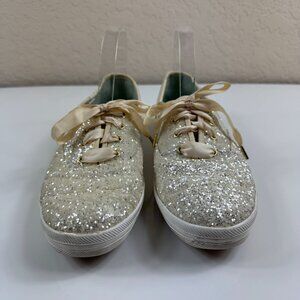Keds X Kate Spade New York Champion Gold Glitter Sneakers US 10 Ribbon Lace Up