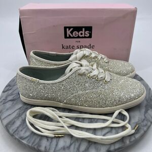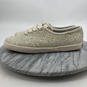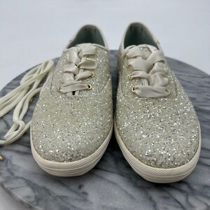 Keds X Kate Spade New York Womens 7.5 Wide Cream Glitter Sneaker Lace Up WF53272