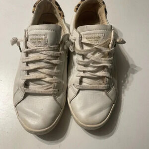 Keds X Kate Spade Women’s 8.5 White Leather Leopard Print Trimmed Sneakers