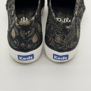 Keds Rifle Paper Company Slip On Sneakers Shoes Casual Work School Walking Vacation Comfy Comfortable Travel Preppy Fun Spring Summer Limited Edition Black Gold Design Floral Print