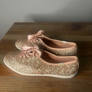 Keds kate spade Glitter Sneakers Rose Gold Sparkle Ribbon Lace Up Shoes