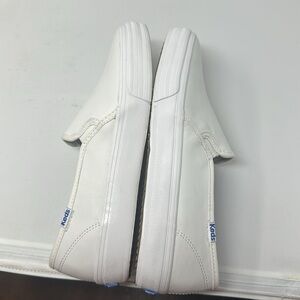 Preowned. Keds white leather double-decker slip on. Cushioned insole. Please examine photos carefully the best description of the shoes being sold.