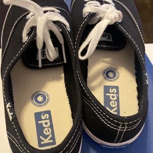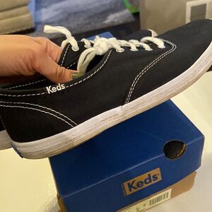 Used black with white keds low top sneakers. The come with the box. Size is ladies 6.