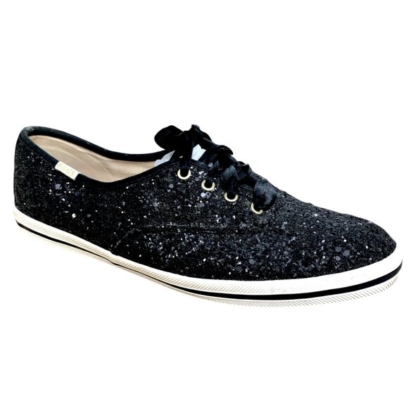 Keds x Kate Spade Sneakers Womens 8.5 Black Glitter Low Top Shoes Event Party