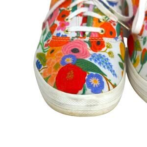 Item in Excellent Preowned Condition. Some wear SEE PHOTOS, Floral sneaker, Rifle Paper Co. signature botanical print, Floral trend perfect, Preppy classic style, Canvas upper, Cushioned insole, Brushed grommets, Rubber sole, Lace up closure.