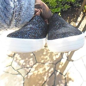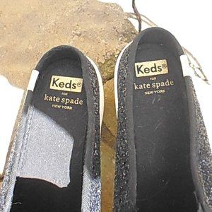 All over glitter; side gores; Keds logo and kate spade new york signature motif at back. Cushioned insole, Manmade upper; cotton twill lining; rubber sole non-marking.