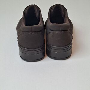 Brown, size 7.5 W. Slip on with zipper front. Padded insole. All manmade. Cute and comfortable! Great with slacks or shorts.