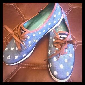 Keds in Blue chambray with white Ikat print