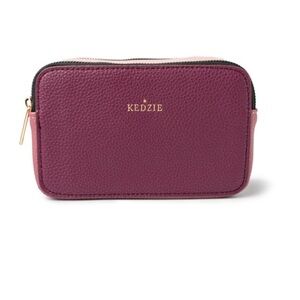 Kedzie Modernist Vegan Leather Double Zipper Small Crossbody. Wine color.